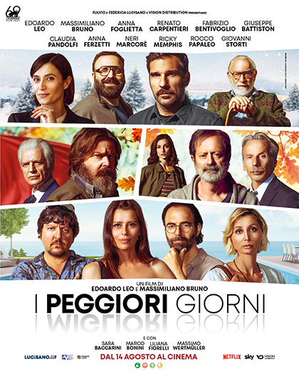 I Peggiori Giorni, film diretto da Massimiliano Brunoed Edoardo Leo, è ambientato durante le feste, quelle solitamente passate con i familiari, come il Natale, o con gli amici, come il Ferragosto, oppure quelle in cui ci si diverte ai danni degli sconosciuti, come Halloween, o nelle quali, in generale, non si lavora, come dovrebbe essere il Primo Maggio. Il film racconta quattro storie, tutte ambientate durante le festività. La prima è quella di tre fratelli, che nel giorno di Natale decidono di tirare a sorte per scegliere chi, tra loro, dovrà sacrificarsi e donare un rene al padre. Poi c'è un Primo Maggio un po' burrascoso per un imprenditore, che già di per sé sul lastrico, deve affrontare anche il suo rapimento per mano di un ex dipendente. Quest'ultimo, dopo essere stato licenziato senza una giusta causa, è disposto a tutto pur di ottenere i soldi della liquidazione. In un estivo Ferragosto ad accendersi non è soltanto il fuoco del barbecue, ma anche un ardente scontro tra classi sociali, a cui fa da sfondo la classica grigliata. La causa scatenante sarebbero i figli adolescenti, nonché i rischi che questi corrono in un party ad alto tasso alcolico e sul web. Infine, il giorno di Halloween gioca un brutto scherzetto a un mago, che scopre di essere stato ingaggiato da quello che è da sempre il suo rivale in amore.